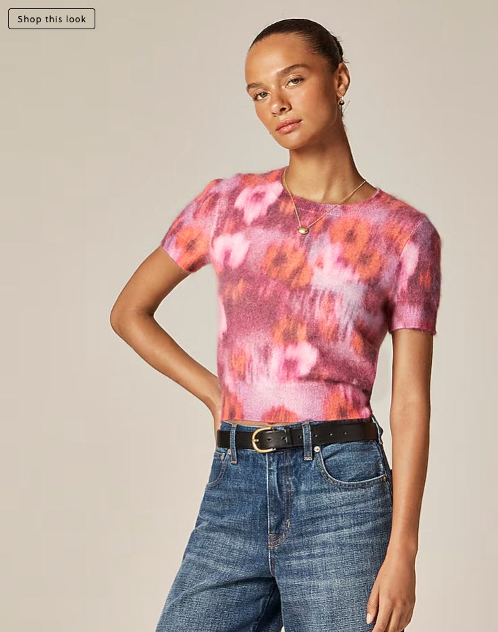 J Crew Brushed cashmere T-shirt in watercolor floral print